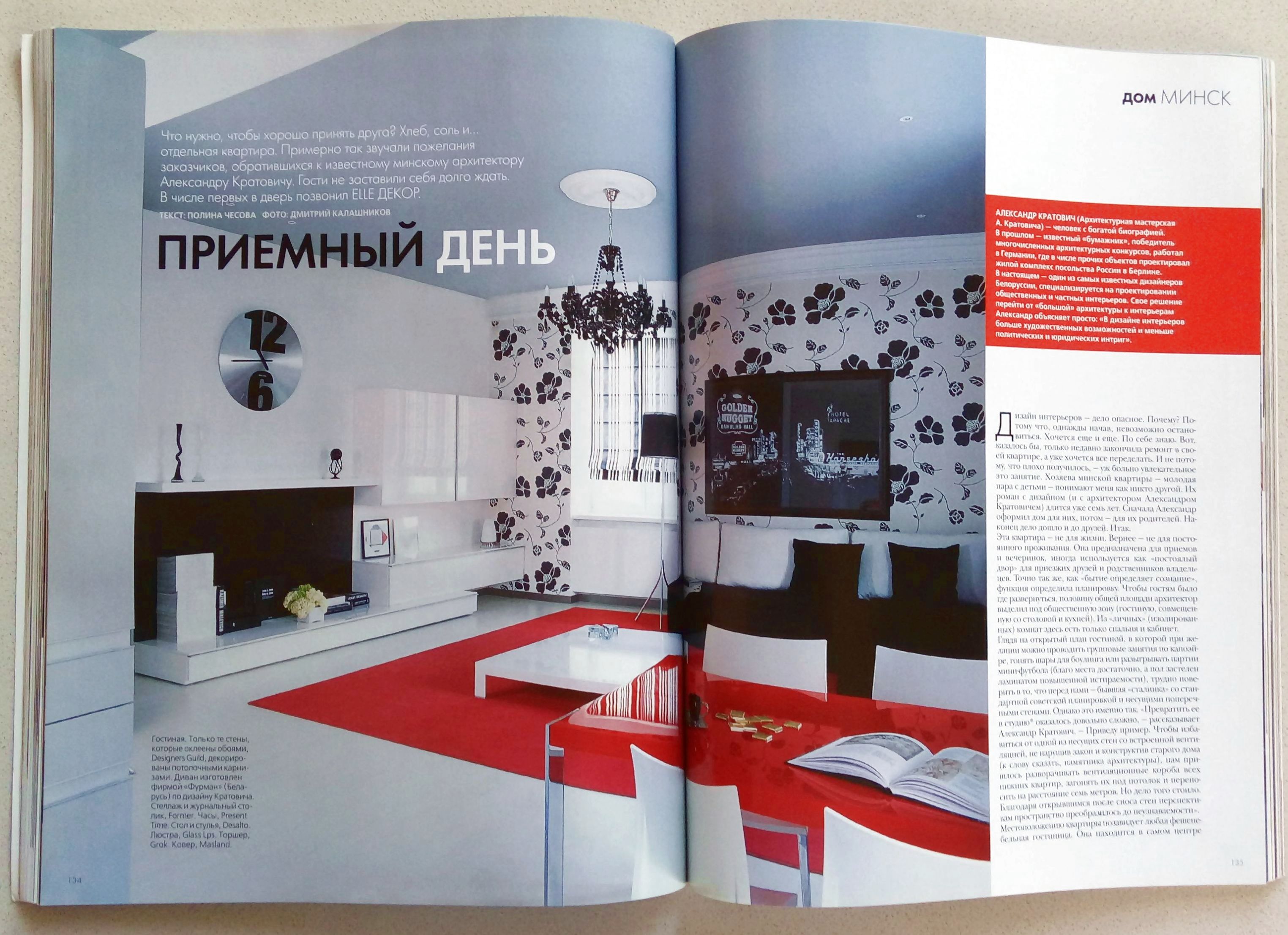 Квартира гостевая «FUSION в сталинке» в Минске опубликована в журнале – ELLE DECORATION №69 2007г.
